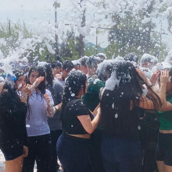 El Centro de Padres y Apoderados quiso consentir a todos nuestros estudiantes con una súper fiesta de espuma 💦🎈 para celebrar el último día de esta semana tan especial. Fue un momento lleno de risas, alegría y mucha diversión bajo el sol ☀😄.