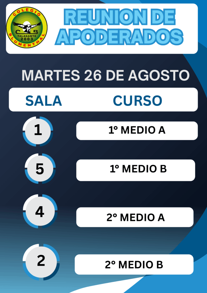 - Los estudiantes de la jornada de la tarde 1° y 2° medio, se retirarán a las 17:30 hrs, los días de la reunión de apoderados. Se solicita encarecidamente, que los estudiantes NO se queden, ya que la reunión es de apoderados y dificulta atender apoderados y monitorear a los estudiantes.