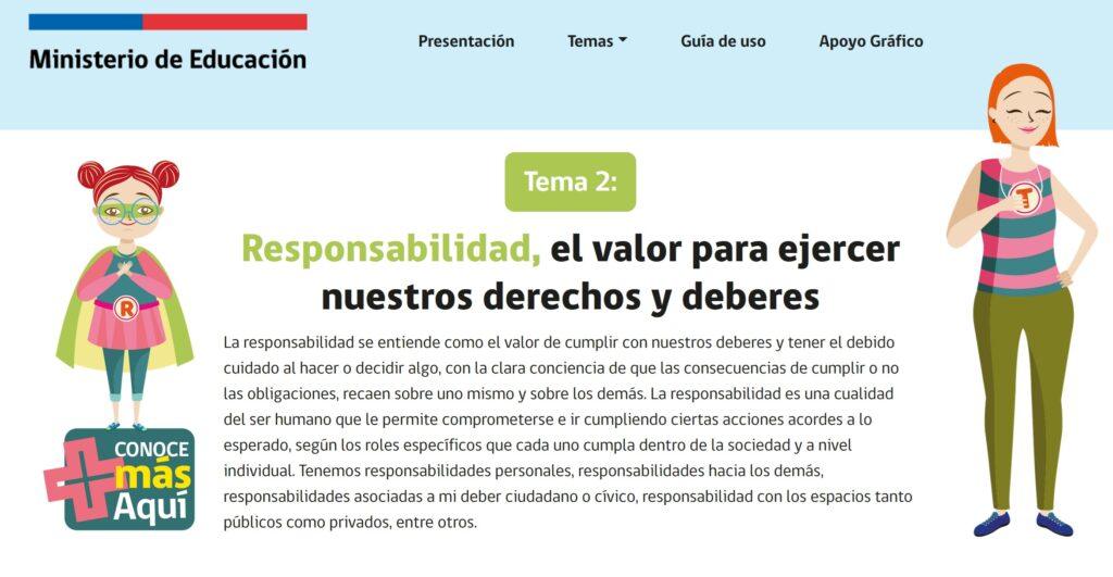 La responsabilidad se entiende como el valor de cumplir con nuestros deberes y tener el debido cuidado al hacer o decidir algo, con la clara conciencia de que las consecuencias de cumplir o no las obligaciones, recaen sobre uno mismo y sobre los demás. La responsabilidad es una cualidad del ser humano que le permite comprometerse e ir cumpliendo ciertas acciones acordes a lo esperado, según los roles específicos que cada uno cumpla dentro de la sociedad y a nivel individual. Tenemos responsabilidades personales, responsabilidades hacia los demás, responsabilidades asociadas a mi deber ciudadano o cívico, responsabilidad con los espacios tanto públicos como privados, entre otros.